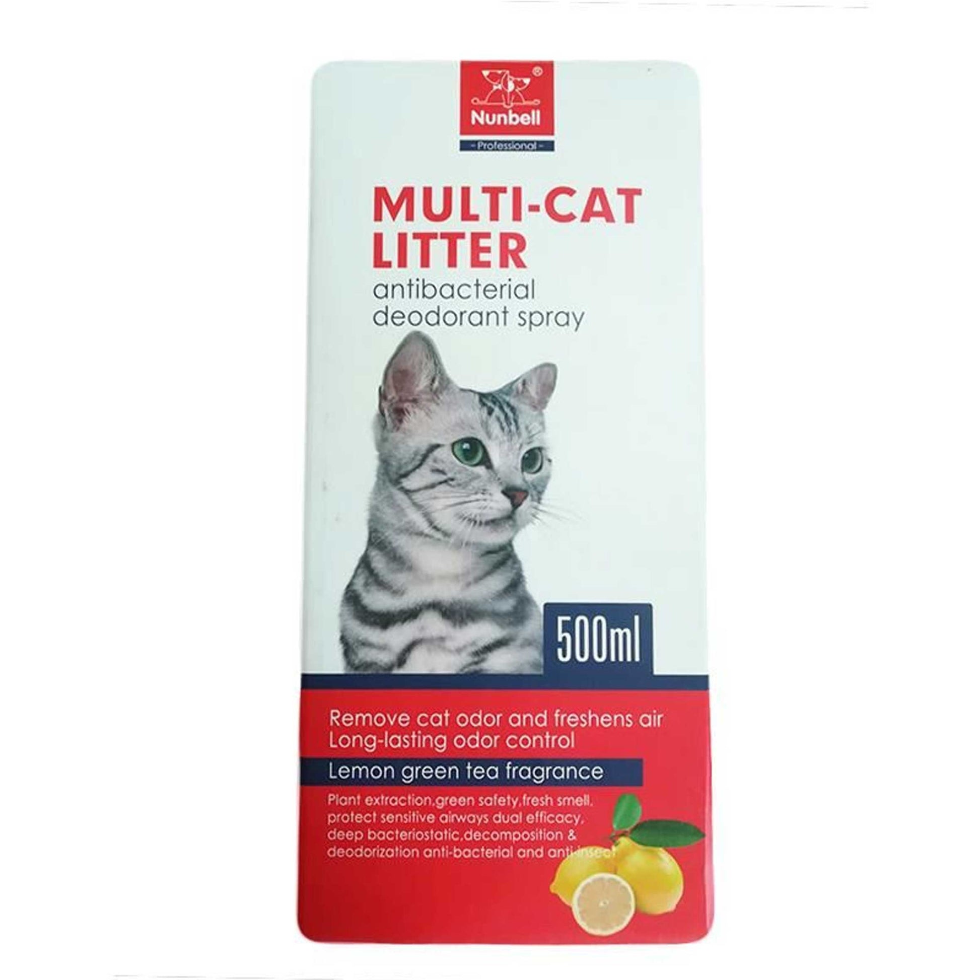 Nunbell Multi-Cat Litter Spray is an antibacterial deodorant formula designed for multi-cat households, featuring plant extracts like lemon and green tea for long-lasting odor elimination in litter boxes, cages, and homes. Its double-action bacteriostatic properties neutralize bacteria at the source while leaving a fresh, non-irritating scent safe for sensitive respiratory systems.